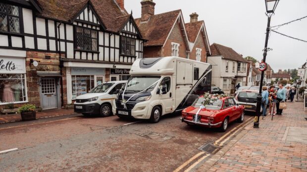 ‘The best day ever’: bridal party arrives in horsebox for the perfect Brightling wedding