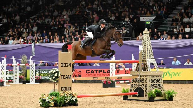 ‘He’s unbelievable’: eight-year-old horse – in lucky tendon boots — clears 2.15m to win puissance thriller
