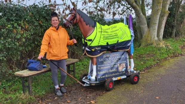 ‘This is my purpose now’: mum of young rider who took her own life to walk 170 miles towing resin horse