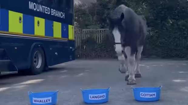 ‘The best boy’: 18.2hh police horse who stole hearts in TV interview arrives at his forever home