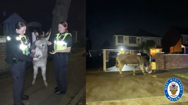 ‘Braying for more’: resourceful police use mints to capture donkey loose on the road
