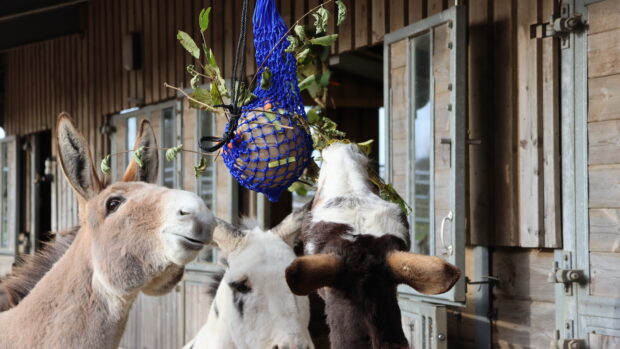 Oh, baubles! Donkeys choose – and tuck into – their favourite Christmas decorations
