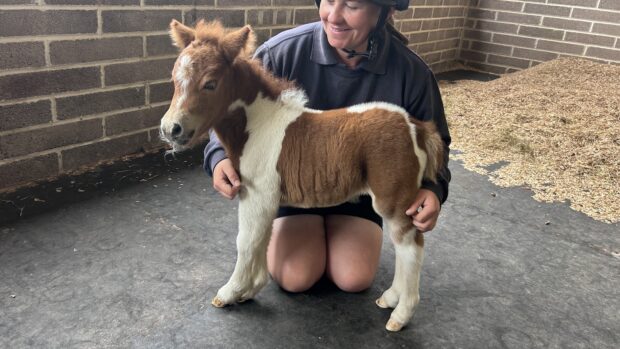 ‘Adorable’ but tiny 15kg foal carries a message to would-be horse breeders
