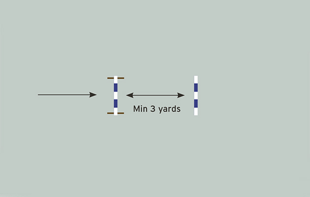 - If you’re doing it the first time, make sure you give them enough space for the pole. “This fella [Foudre F] is quite scopey, so I’ve had to use a distance of 3 1/2 yards at 1.10and four yards at 1.20m,” he says.